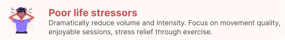 Adjust training intensity based on stress: High stress + high training intensity = disaster. Instead: