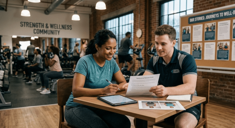 Always get explicit written permission before sharing any client’s story, name, photos, or results. Many trainers use testimonial release forms that specify exactly what information can be shared and where. Never assume permission, even if the client casually mentioned you could.