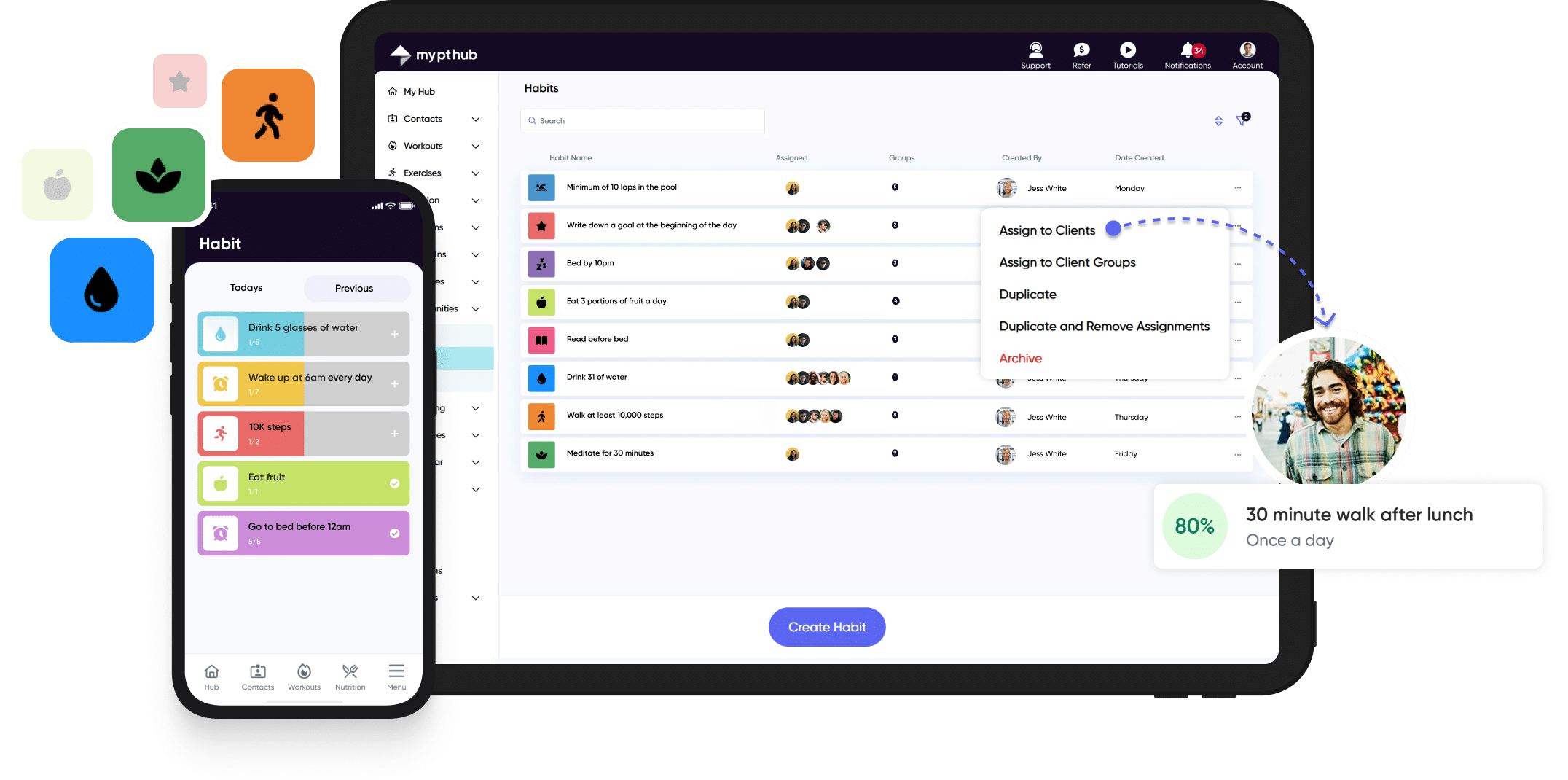 Motivate, engage and inspire your clients with advanced habit-coaching features