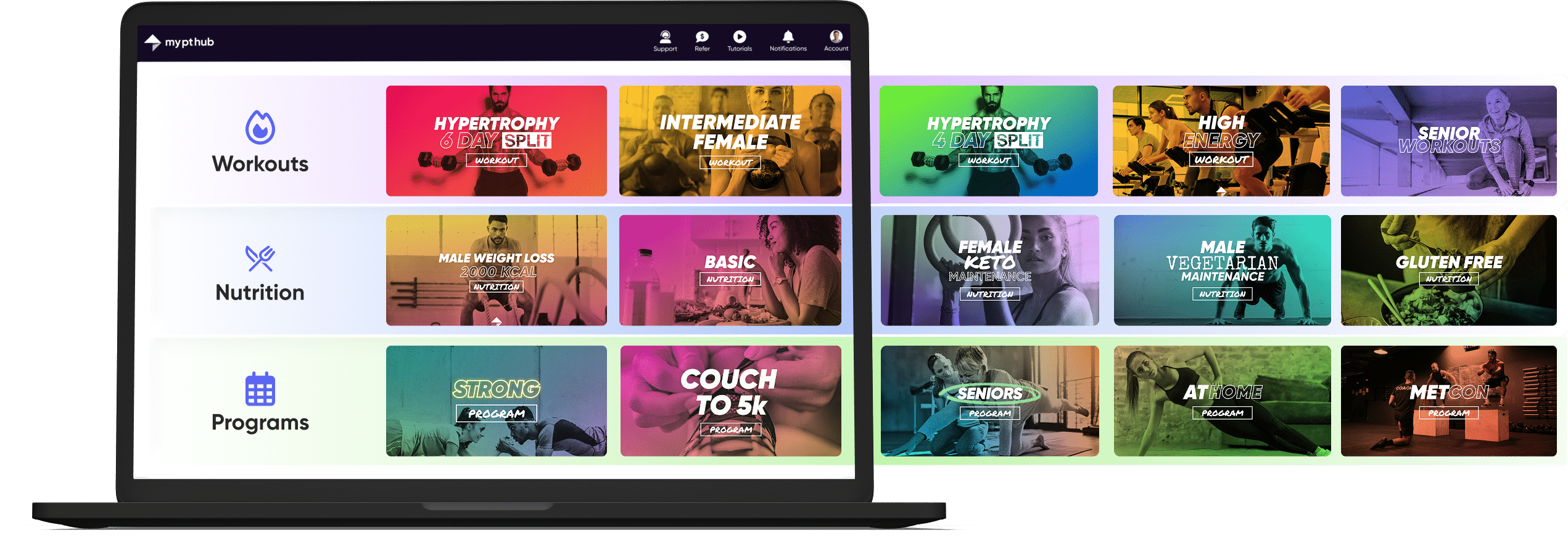 My PT Hub’s template library includes thousands of pre-made workouts, multi-week programs and nutrition plans covering a huge range of goals, training styles and client types. From beginner bodyweight sessions to advanced performance programs, our library is built to give personal trainers a meaningful head start, no matter what your niche is and which kind of clients you typically work with.