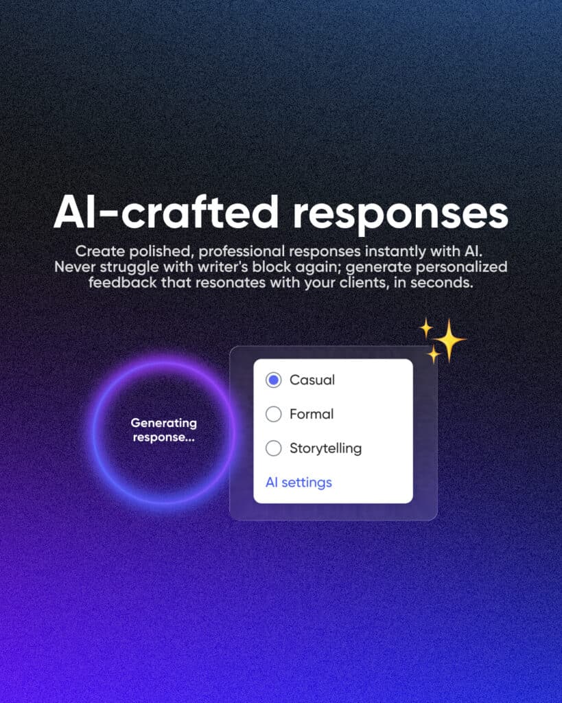 You maintain complete control. Use the AI-generated response as your starting point, or customize it to add personal touches. Either way, you’ve transformed a 10-minute task into a 60-second win.
